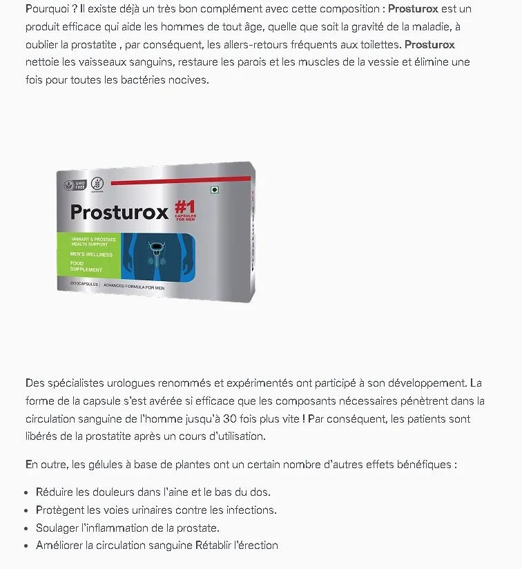 « Prosturox illustre bien l’intérêt d’une supplémentation ciblée et modérée. La synergie entre vitamines antioxydantes et métaboliques permet un accompagnement équilibré de l’organisme. Ce type de formule est particulièrement apprécié par les personnes sensibles aux produits trop concentrés. L’absence d’effet brutal renforce la sécurité d’utilisation. Prosturox répond à une demande croissante pour des solutions simples et bien tolérées. Il s’agit d’un complément nutritionnel cohérent. »